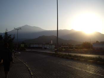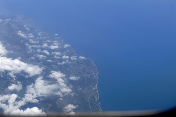 "MosTravel" (www.mostravel.com). И вот мы в аэропорту... Регистрацию прошли невероятно быстро, да и досмотр тоже - наверняка не было параллельного рейса на то же направление. Остальное время ходили по duty free и ждали объявления нашего рейса. До последнего не знали, на чём летим. Оказывается на нашем, российском, "Ил-86" :). Нет, на самом деле очень даже приличный, да за такие деньги... Очень даже. Летели на высоте около 10 тысяч метров. И все внизу было видно. Было, конечно, очень красиво. Как в другой мир попали. Летели около трёх часов. Пролетели сушу до побережья, а потом, море, море, море... От побережья до побережья около часа полёта. Холмы внизу плавно сменились горами. Было интересно наблюдать за этой трансформацией.