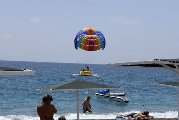 а на берегу моря, тут же на пляже, можно полетать на парашуте,
