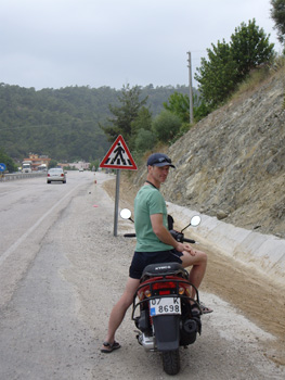 назначенное место старта. Наш состав был типа длииинного паровозика, за рулём некоторых мотоцыклов были женщины и скорость следования была не столь высока (за ихнюю смелость надо отдать им должное), но это стоило того. Вокруг нас прерода была великолепна, горы с отвесными стенами, почти всё усеяно зеленью, море в дымке сливающееся с небом. Пройдя четверть дистанции, проводники остановили колонну на маленький привал, наверняка, чтобы группа отдахнула и обменяться впечетлениями о проделанном пути и окинуть взглядом всю красоту местности. Совсем забыл. Нашу группу, с самого начала сопровождал человек с фото и видео камерой. В процессе нашего движения, он опережал нас на мотоцыкле и разместив видео камеру на штатив у подъёма или подходящего для него места, включал её при приближении туристов, ставив на штатив, а сам брал фотоаппарат и фотографировал нас. На фото это видно.
