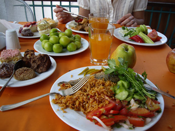 с огня (мясо, рыба, выпечка и пр.), кому какое приготовление нравилось. Соки, вина, пиво. Всё неупомнишь. Гурманам, конечно прямой путь в