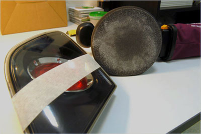 Сам процесс... Нанеся пасту и недавая ей высохнуть, работая ш.машиной, держа в одной руке фару, а в другой ш.машину (было очень неудобно, на автомашине в закрепленном состоянии гораздо практичнее будет и обе руки задействованы). Попачкав пальцем фару и сам круг несколькими мазками пастой с образивом, размазав на низких оборотах той же ш.машиной по фаре, поработав более жестким кругом смазаной пастой с минуты 3-4. Процедуру повторил с мягким кругом и менее образивной пастой, предварительно отмыв обильно смоченной салфеткой фару. Вот так за ~10 минут с этим было покончено.