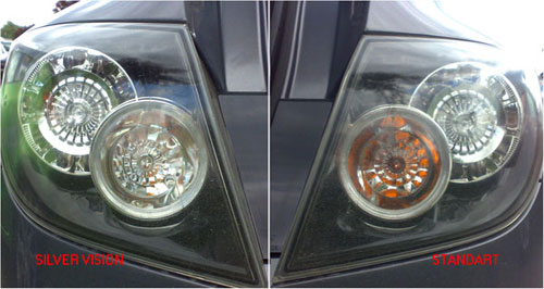 Лампы с серебристым покрытием... Фары прозрачные и спереди и сзади, а по этому лампы поворотов через отражатель увеличивают желтизну и получается неприятность с внешним видом в выключеном состоянии :(