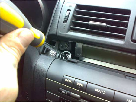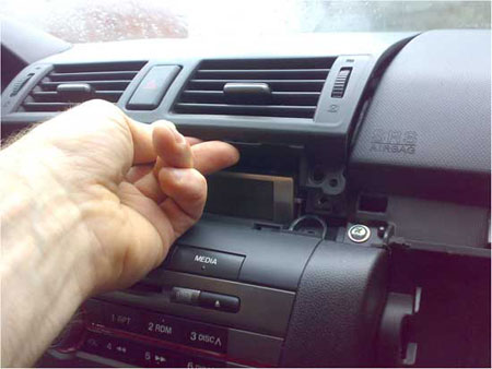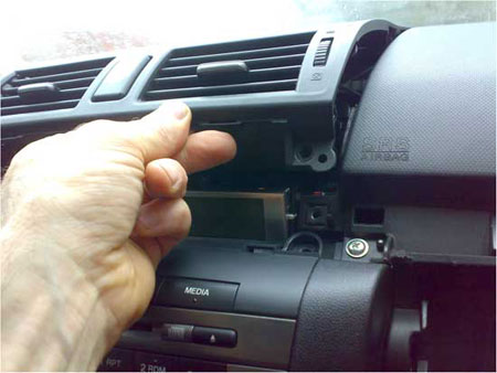 ...снимаем панель воздуховодов и аварийки (фото 14), это нам дает свободный доступ для комфортной установки нового ГУ, GPS-антенны и всех соединений.