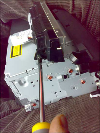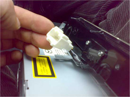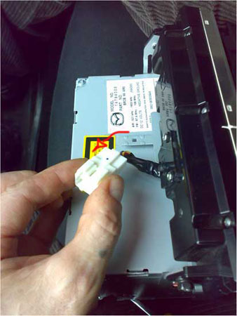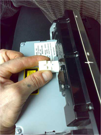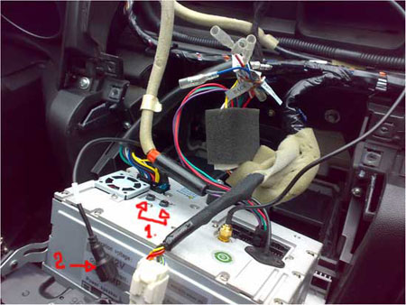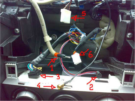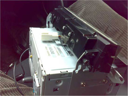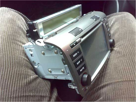 Затем сторожно, держа обеими руками и не задевая декоративные панели ни с лева, ни спарва, ни снизу (дабы непоцарапать их), вынимаем ГУ (фото 18). Отсоединяем все разъемы от ГУ (основную колодку, радио-антенну, разъем дополнительного дисплея (бортовой компъютер)) и вынимаем родное ГУ как ненужный элемент :) Внимание: Все электрические разъемы на защелках, так-что больших усилий стараемся не применять, дабы несломать чего либо, а ищщем "куда надо нажать, чтобы отстегнуть".