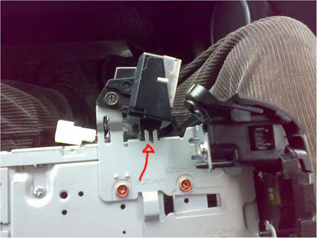 Нажав, справа на рычажок защелки (фото 13), отключаем разъем аварийной кнопки и...