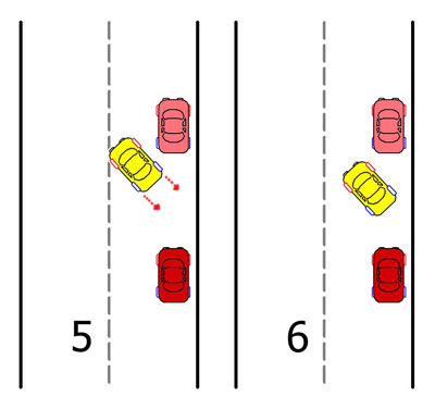 Выкручиваем руль в прямое положение (5) и продолжаем движение назад. Переводим взгляд на передний бампер вашего автомобиля и задний впереди стоящего. Поравнявшись с ним по касательной, ОСТАНОВИТЕСЬ (6).