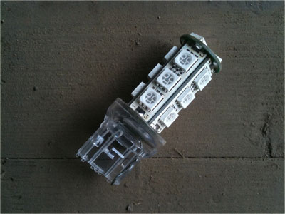 Проблема в том, что очень сложно найти лампу, у которой свечение былоб красным и на достаточном уровне яркости (стандартная лампа с нитью накала, имеет мощность излучения 21 ватт, светодиодная всего 18 ватт, но этого с лихвой хватает компенсировать яркость излучения).