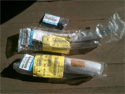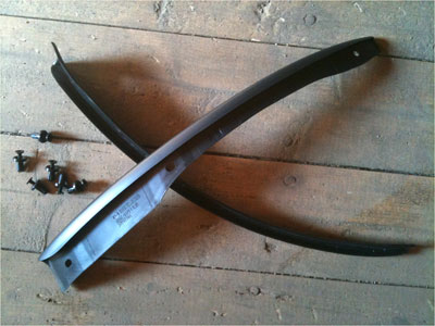 Молдинг заднего крыла от Мазды 3 МПС Данные штуки ставят на достаточно мощных машинах которые отчасти спасают заднее крыло и бампер от пескоструя лакокрасочного покрытия, ну и придаёт шарм спортивности авто с долей КПД. Этот девайс был приобретен у оф.дилера, так как нехотелось ждать месяц заказав на exist'e, незначительно дешевле. Фото 1 Закупленный комплект (Фото 1). Молдинг заднего крыла: Клипса крепления: