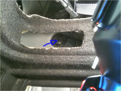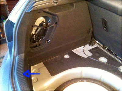 ...стрелкой показано технологическое отверстие для протяжки в отсек багажника электрики и т.п. (фото 6).