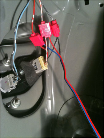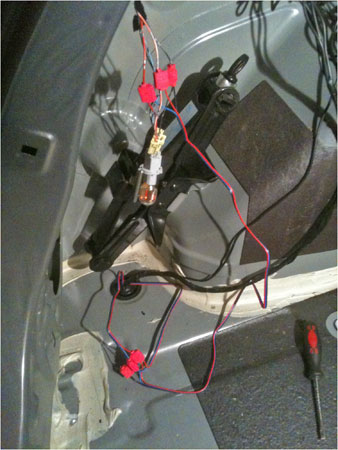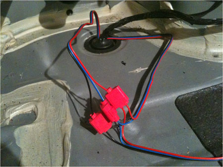 Технологическое отверстие состороны багажника и подключение правого катафота к левому. Тут все подключается в соответствии с цветом при помощи контактных адаптеров идущих в комплекте.